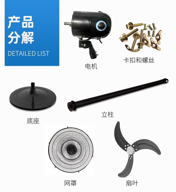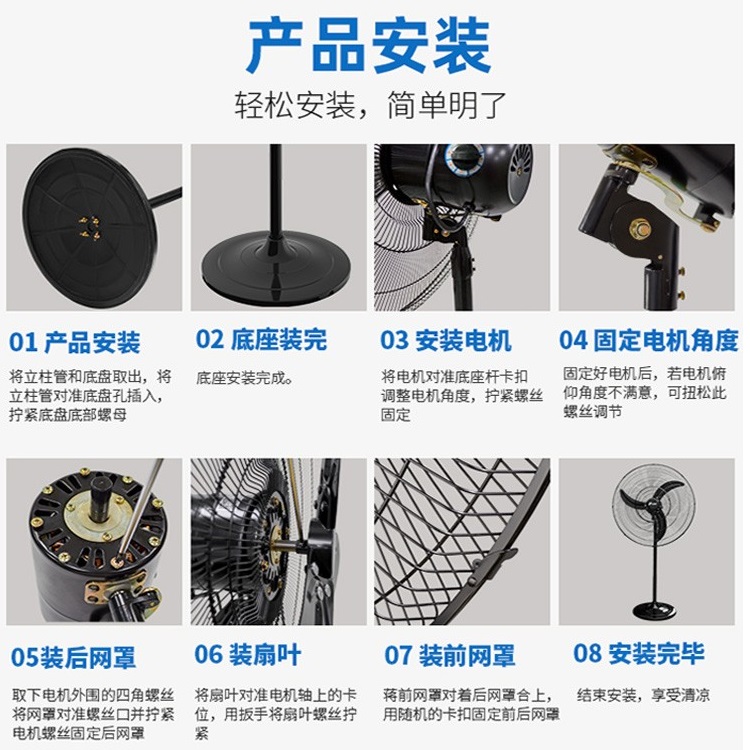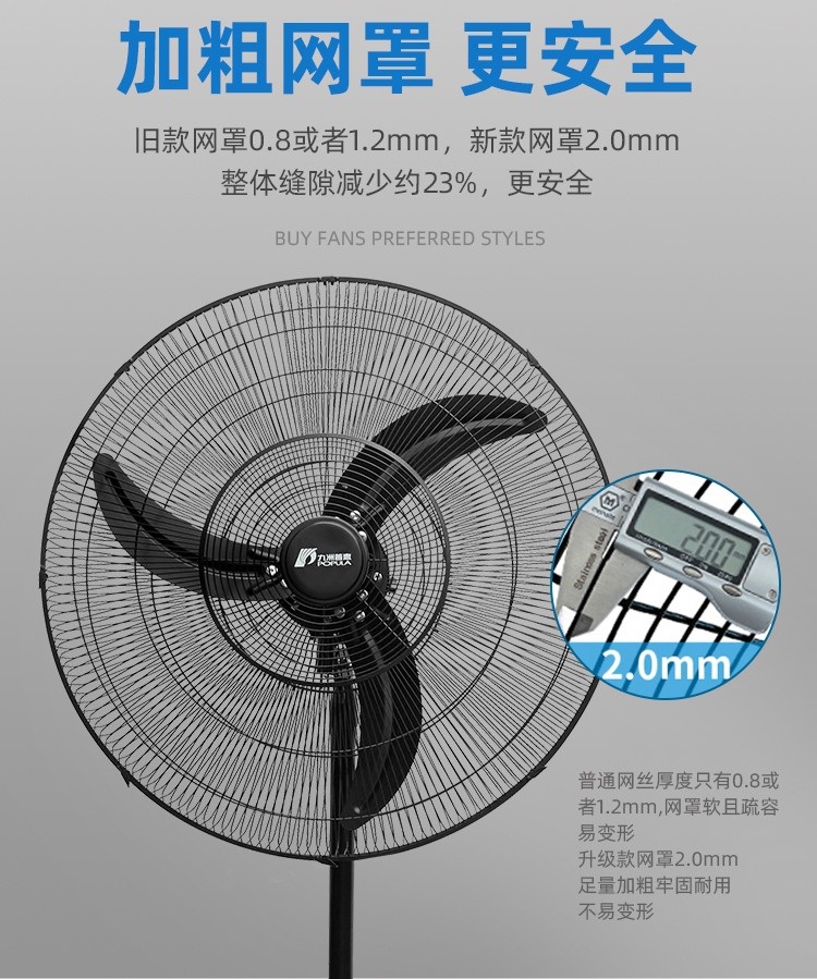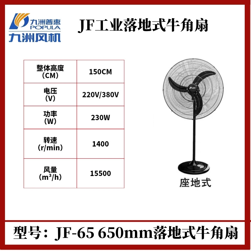 九洲普惠落地工业扇,具有款式新颖,造型美观,风量大,噪音低,安装简单的特点。