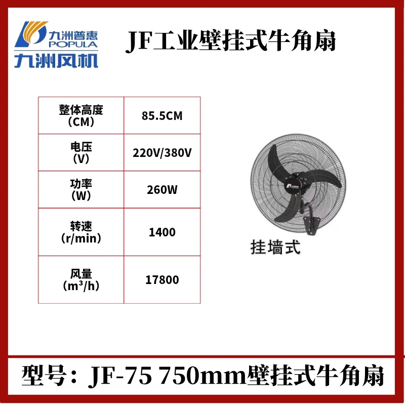 九洲普惠-强力型摇头式工业扇/壁式牛角扇